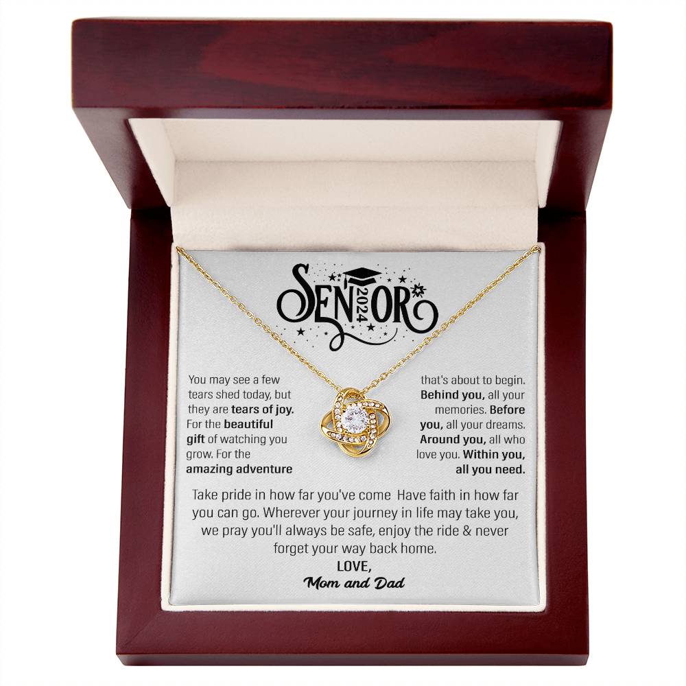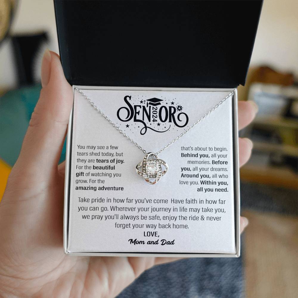 Imagine her reaction receiving this beautiful Love Knot Necklace. Representing an unbreakable bond between two souls, this piece features a beautiful pendant embellished with premium cubic zirconia crystals. Surprise your loved one with this gorgeous gift today!